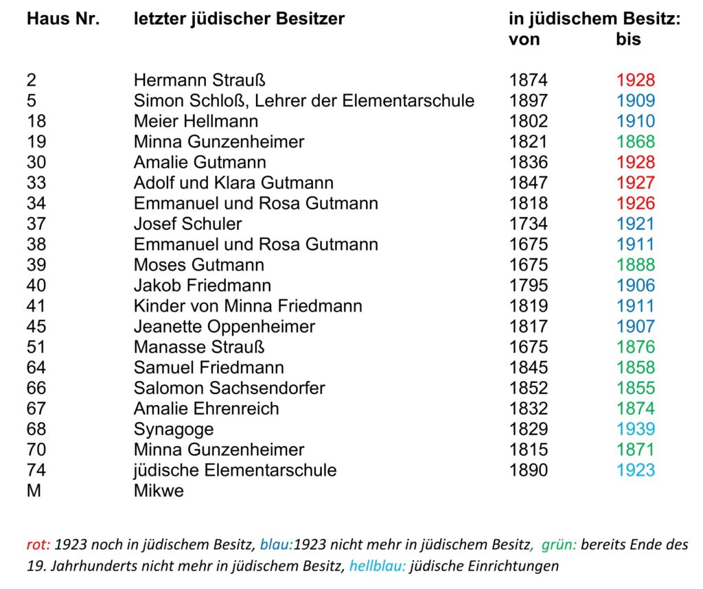 Haus Nr. 34, im Bildzentrum, wird im Februar 1818 von Löb Friedmann erworben. 1923, im Besitz von Emanuel und Rosa Gutmann, ist es der zweite Schauplatz des Pogroms von 1923.